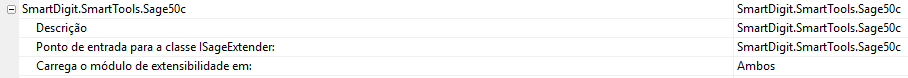No sub-menu “Extensibilidade” preencher o campo “Ponto de entrada para a classe ISageExtender:” com o seguinte texto sem aspas.