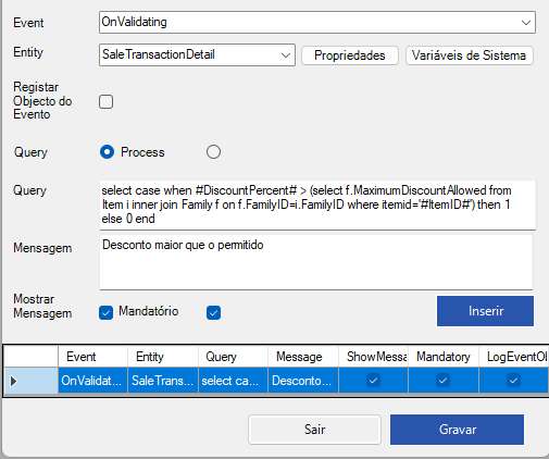 Mensagem:Desconto Maior que o permitido